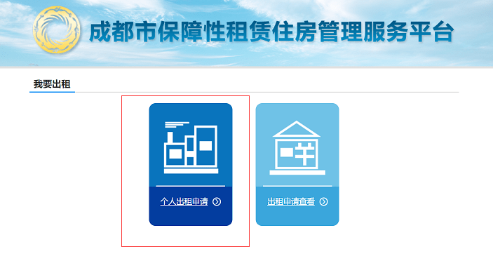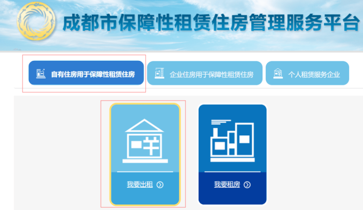 进入成都市保障性租赁住房管理服务平台的“自有住房用于保障性租赁住房”界面,点击“我要出租”。