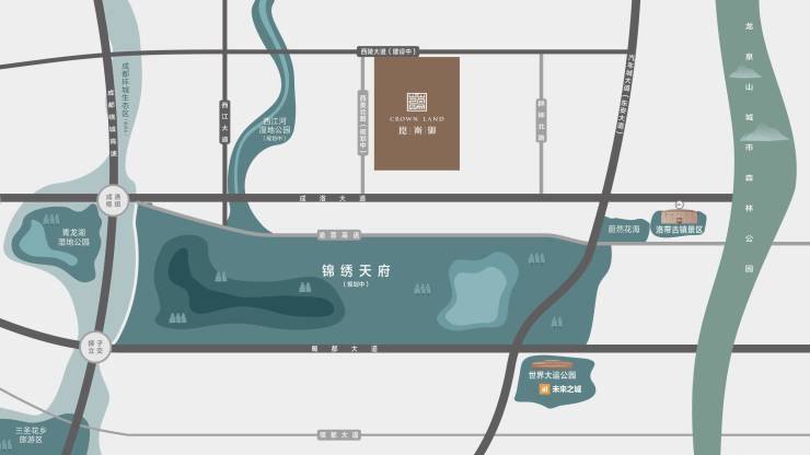 城市发展主轴:项目雄踞东进战略核心通道成洛大道,落子龙泉驿西河城市副中心,占据"一心三极"创新引擎位置,共享成渝双城经济圈与东进战略双重红利。