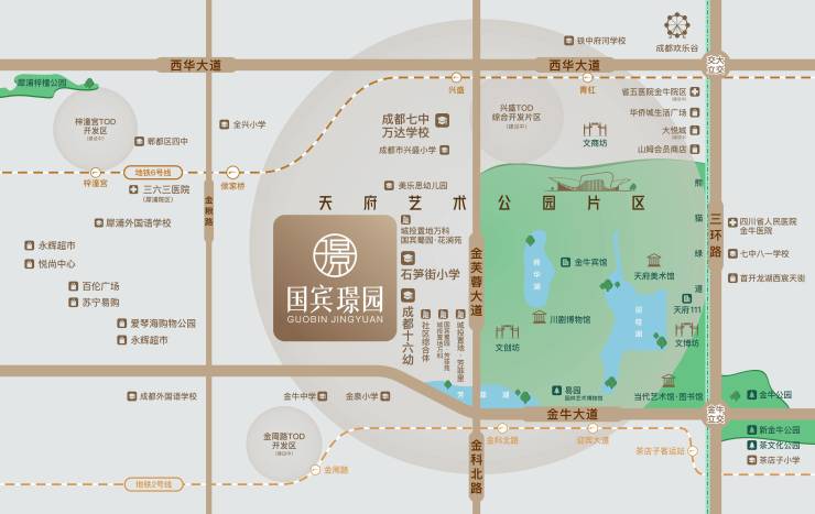 交通配套:金牛大道、西华大道。金粮路、金芙蓉大道、三环路。坐享双地铁三TOD+10余条公交路线,主要的2条地铁线路:2号线金科北路站:约1公里;6号线兴盛站:约1公里;9号线2期和12号线规划中。3TOD:兴盛TOD、梓潼宫TOD、金周路TOD。