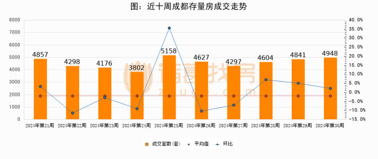 【成都成交周报】第30周新房成交1453套,二手房4948套,涨价房源1352套