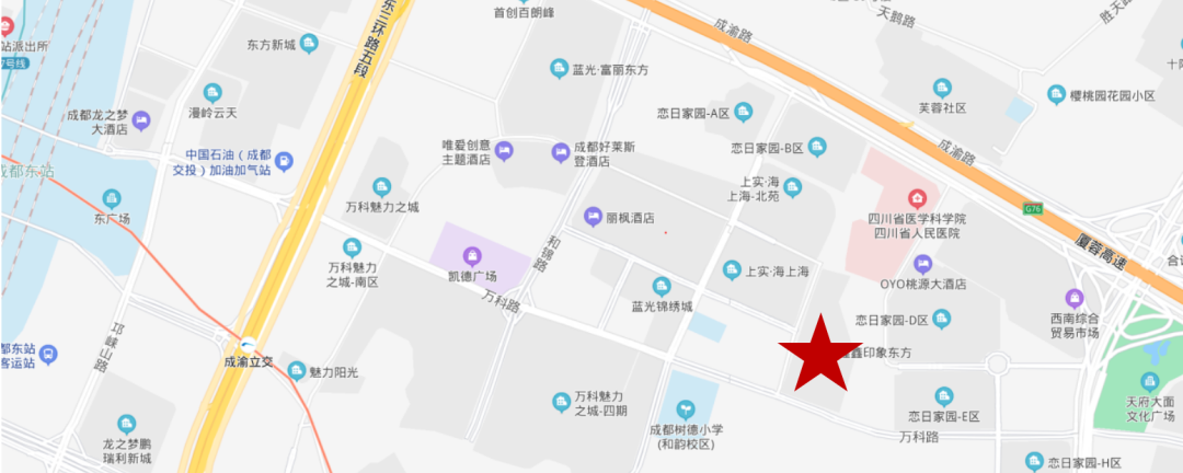 隆鑫印象东方位于东三环外,距离成都东站和地铁2号线成渝立交站约1.5公里。项目地处醇熟住区,邻近成都树德小学(和韵校区),距离凯德广场(魅力城店)700米左右,周边有万科魅力之城、荣盛·紫提东郡等多个成熟小区。