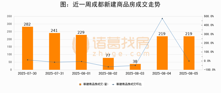 【成都成交日报】08月05日新房成交219套、二手房751套;涨价房源3套