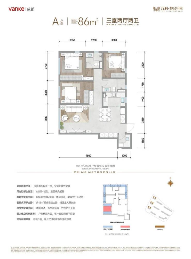 万科都会甲第主力户型面积86-121㎡,精准满足不同家庭居住需求。