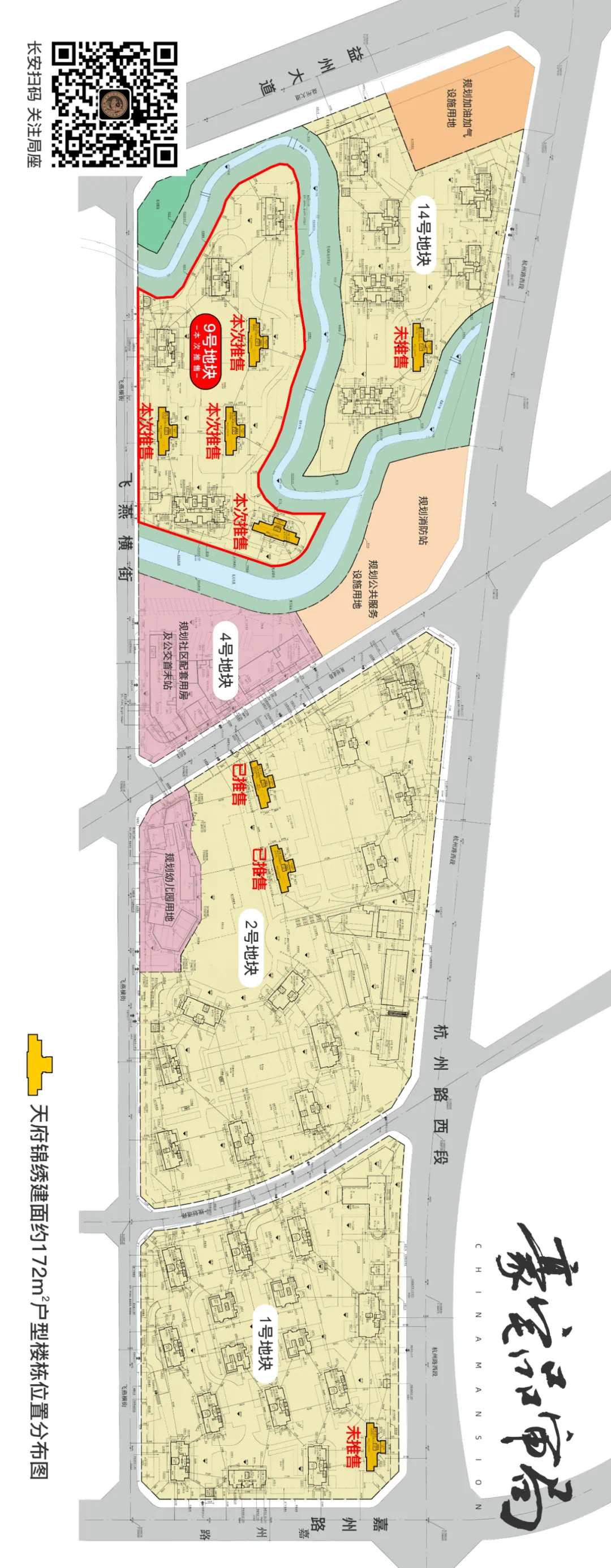 172㎡栋型是天府锦绣的准入门槛。再往上,就是198㎡、256㎡(产权面积根据阳台是否封闭相应变化,户型布局方式基本相同)、甚至330㎡——纯粹性毋庸置疑。天府锦绣可售住宅楼栋共30栋,8栋为172㎡栋型。这8栋楼分布如下:1号地1栋(未推售),2号地2栋(已推售),9号地4栋(本次推售),14号地1栋(未推售)。请横置手机查看天府锦绣172㎡楼栋位置分布图