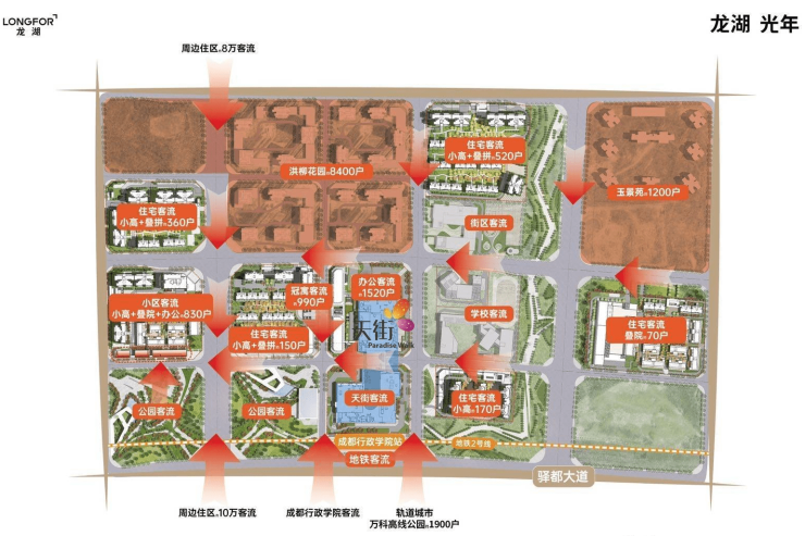 区域位置:项目位于行政政学院TOD板块,有立体交通体系加持的行政学院TOD板块,打破了传统区域“住宅→地铁→商业”的发展模式。而行政学院TOD则是“地铁→商业→住宅”这种配套先行的发展模式。这意味着,真正入住的时候,这里已经是一个成熟的板块。行政学院TOD用3年的时间即可兑现其他板块10年的发展时间。而深耕成都多年的龙湖,这次以前瞻的眼光和更优越的资源整合能力,在城东上演了一场全新的“造城运动”。