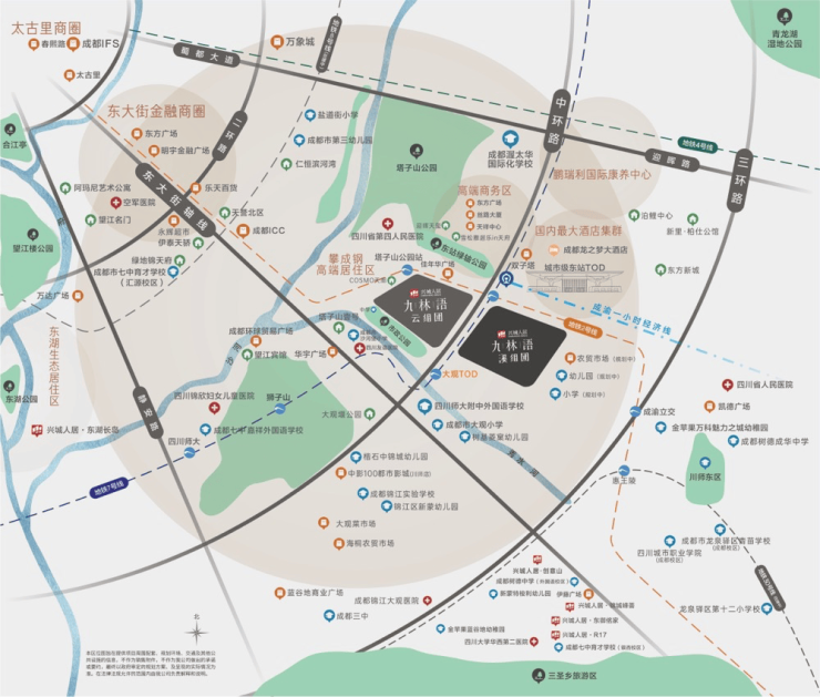 就近有东客站生活圈、毗邻攀成钢商务生活圈、站南金融商圈。