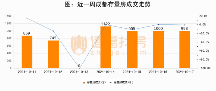 从存量房来看,2024年10月17日成都存量房单日成交998套,比昨日减少2套,环比下降0.2%。从近一周存量房成交来看,成都存量房日均成交套数为818套,10月17日单日成交998套,高于近一周平均水平22%。