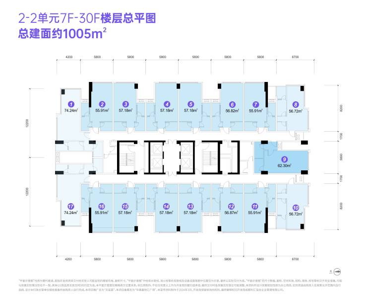 电梯配置:3梯12户(1单元)/4梯17户(2单元)
