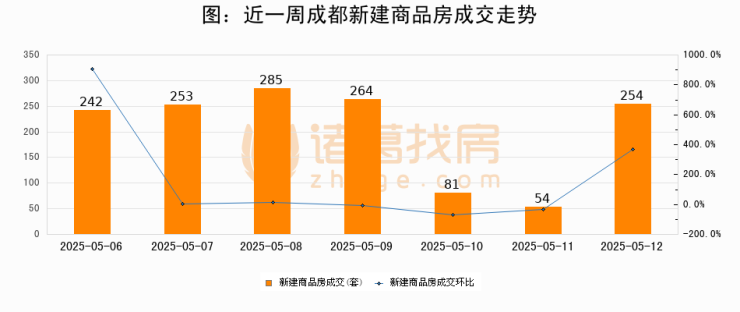 【成都成交日报】05月12日新房成交254套、二手房1309套;涨价房源39套