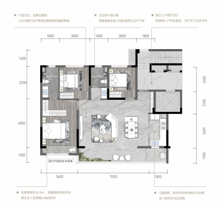 ■ 采用阵列式排布,实现户户南北通透;约45-175米超宽楼间距,保障无遮挡观景视野;主力户型为建面134-143㎡全能四房