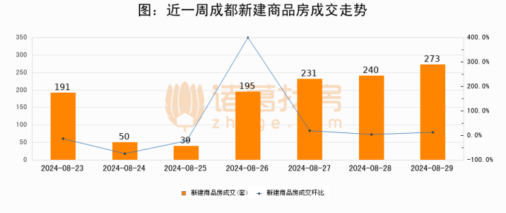 【成都成交日报】08月29日新房成交273套、二手房655套;涨价房源158套