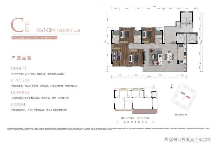建面约143㎡四室两厅三卫