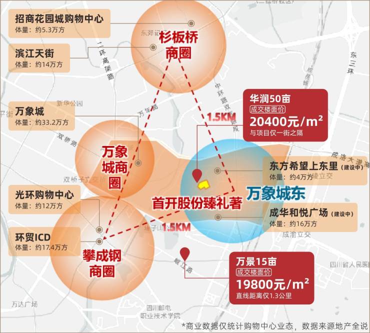 万象城东与攀成钢、杉板桥板块呈三足鼎立之势,共同构成东二环上的“黄金三角”区,这里汇聚了地段价值与城市资源。目前已发展成为媲美金融城商圈的潮流文化引领地,无疑也是城东高端生活居住区的首选之地。