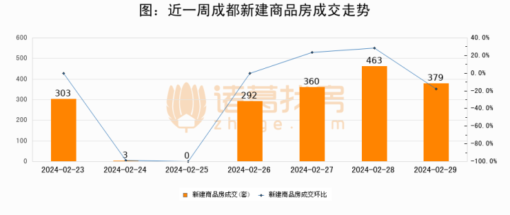 【成都成交日报】02月29日新房成交379套、二手房749套;涨价房源280套