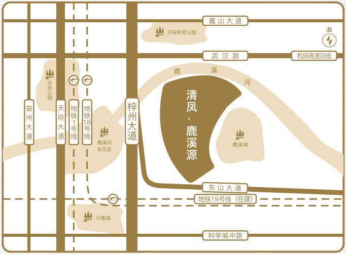 清凤择址,非国家重点城市、非核心政策落位地不选。清凤·鹿溪源位处天府新区核心地带,占据总部商务区和科学城交汇点,呈黄金三角,进退有据。