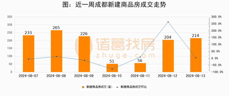 【成都成交日报】08月13日新房成交214套、二手房736套;涨价房源158套