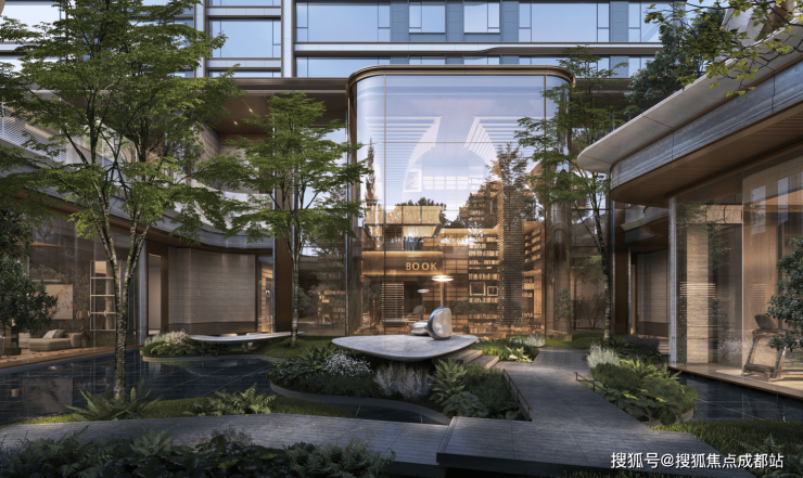 搭配超级底盘、公园入口、下沉庭院规划,构建“建筑嵌入自然,空间层层递进”的立体格局