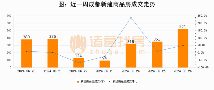 【成都成交日报】06月26日新房成交521套、二手房957套;涨价房源92套