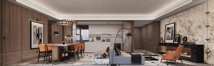 规划仅483户,15-20米限高,成就主城罕见的低密住区。现代美学立面采用定制玻璃、金属板与奢石材质,打造灵动弧线造型。