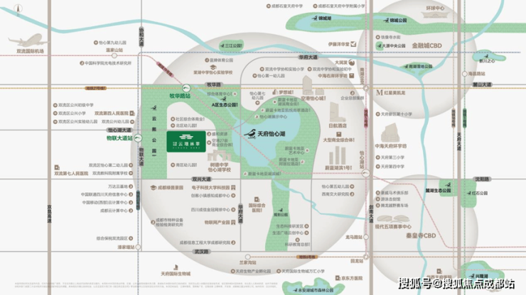 云璟林翠不止是建筑的呈现,更是一种关于“对内观照”的生活哲学思考。首先,源于其得天独厚的土地占位。项目近享怡心湖主湖区生态资源,被云熙公园、体育公园等数座大型城市公园环抱,外部的无界自然,为内部的“森系艺境”奠定了坚实的基础。同时,与树德中学领办的怡心湖学校仅一街之隔的优越位置,更为这片土地注入了浓厚的书香底蕴。