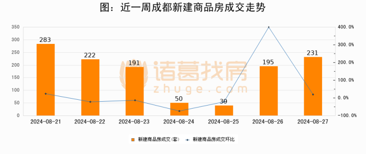【成都成交日报】08月27日新房成交231套、二手房674套;涨价房源180套