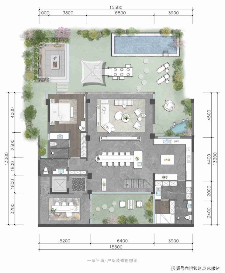 3、豪宅配置拉满:独院户均占地约0.58亩,稀缺土地资源占有;独立花园+独立车位+独立泳池(预留空间自行改造);