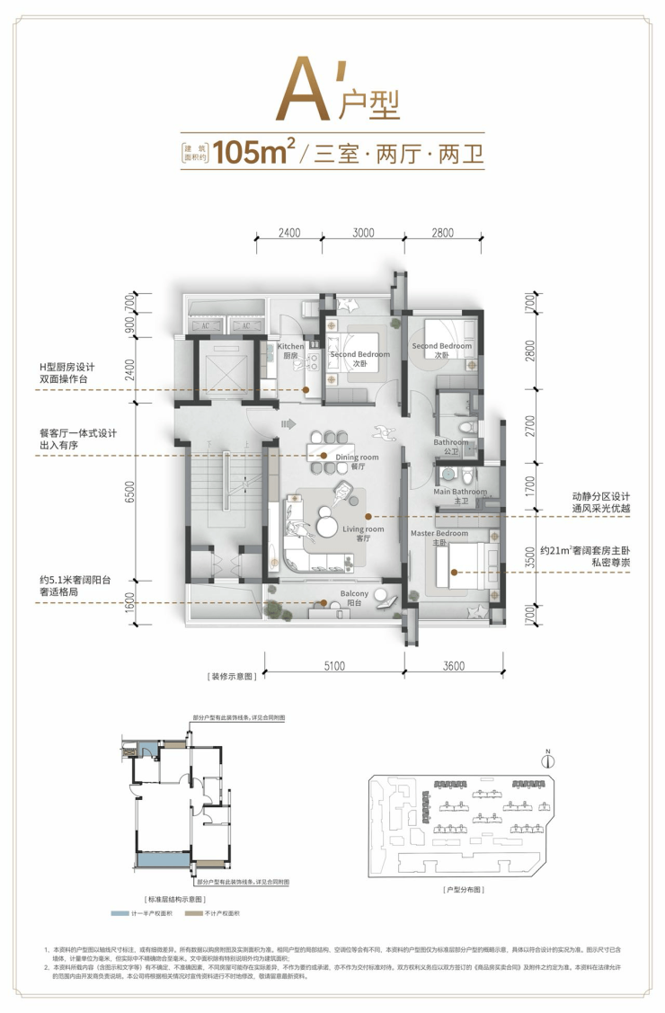 105㎡:创新方厅格局,5.1米奢阔客厅,打造时尚生活场域
