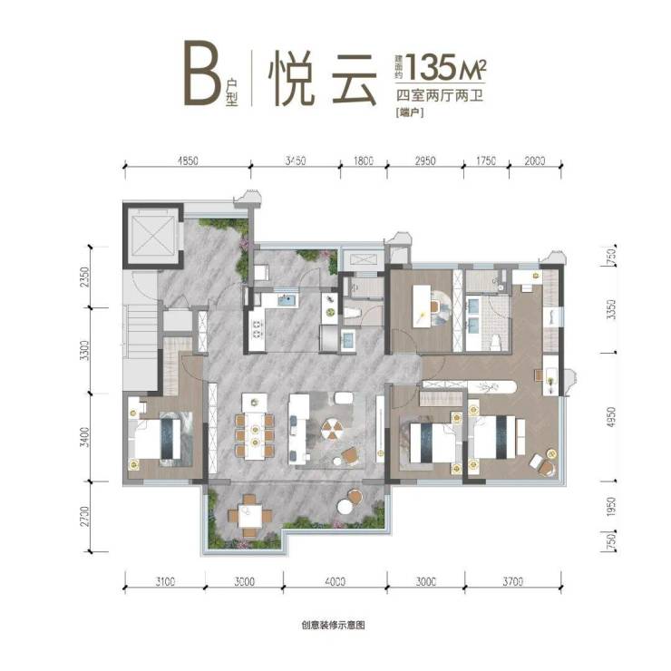 下叠约198㎡产权面积通过创新设计,实际使用空间可达超约600㎡。这种空间延伸不仅是数字的增长,更是生活方式的质变: