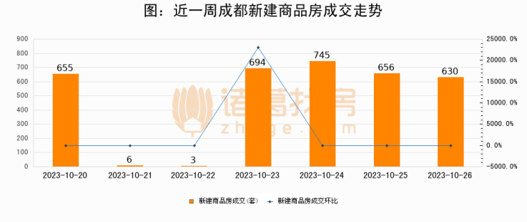 根据成都市住房和城乡建设局数据显示,2023年10月26日成都新建商品房成交630套,较昨日减少26套,环比下降4%