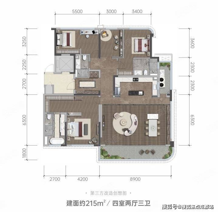 建面约215㎡四室二厅三卫
