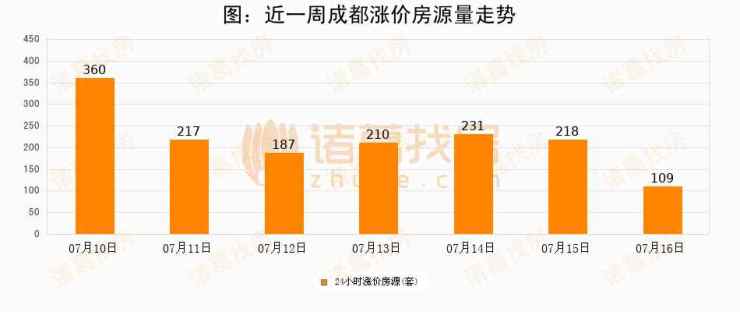 根据诸葛找房数据显示,成都24小时涨价房源量为109套,较07月15日减少109套,环比下降50%。与此同时,涨价房源占比小幅回落,对于购房者来说是一个入市窗口期,购房者可抓住时机入市。