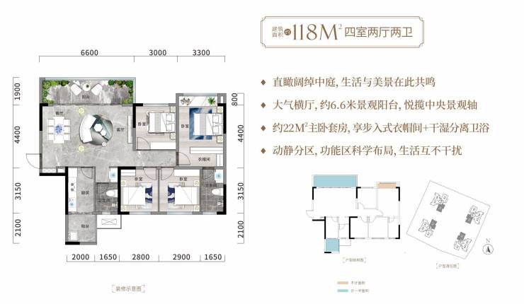 项目共规划了建面约98㎡、105㎡套三双卫,以及建面约118㎡套四双卫等三个主力户型,兼顾门槛和功能性,完美适配青年刚需、刚改和地缘性改善。