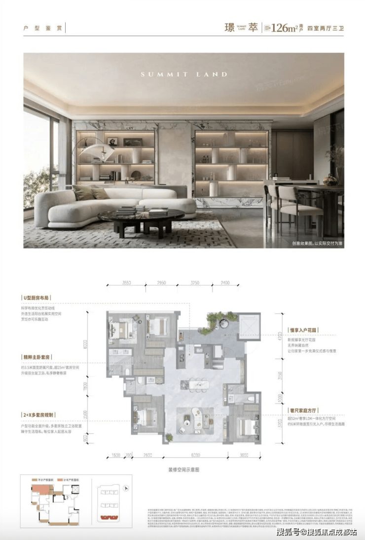 龙湖锦江峯萃主力户型为建面约 126㎡、140㎡四房产品,整体面向改善家庭,没有小户型混杂,圈层更加纯粹。