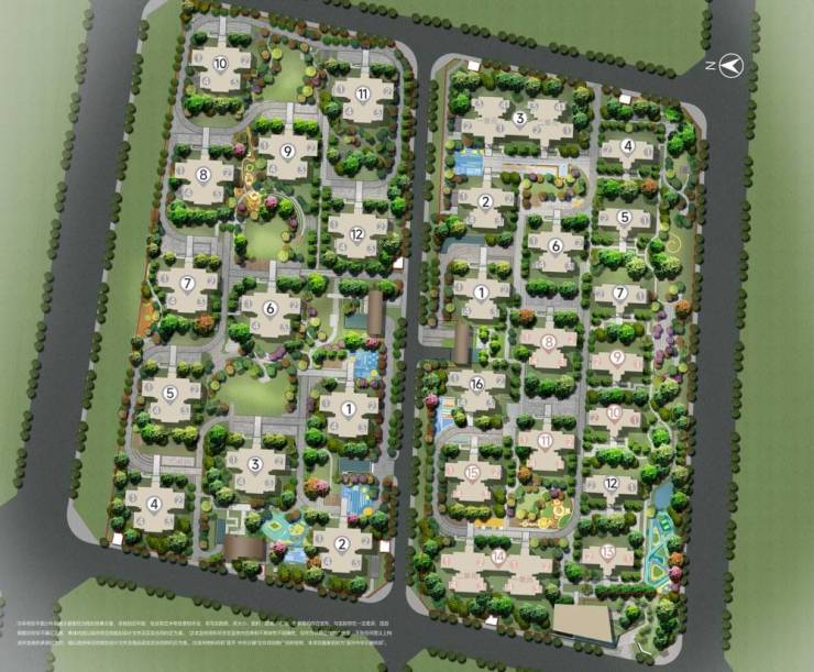 楼栋采用阵列式布局,保证采光、通透及居住舒适度。南地块小高层平均楼间距约30米,洋房楼间距平均25米左右,户户采光通风效果及视野效果俱佳。