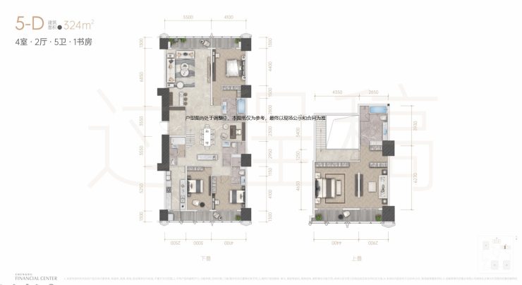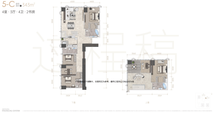 356㎡【3T2户,全户型270度转角布局,极致的开间面和空间布局设计】