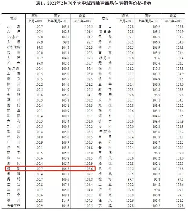 近日,国家统计局较新发布了2月份70个大中城市商品住宅销售价格变动情况统计数据。根据数据显示,全国一二线城市的二手房涨幅均有不同程度的增长。北上广深,分别上涨1.2%、1.3%、1.0%和0.9%;成都上涨0.8%。