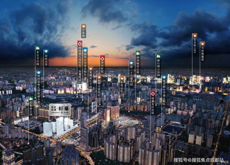 教育:12所大学校-嘉祥,成都七中英才,成都英华,二仙桥学校,万汇学校,理工大学,理工附属中学等