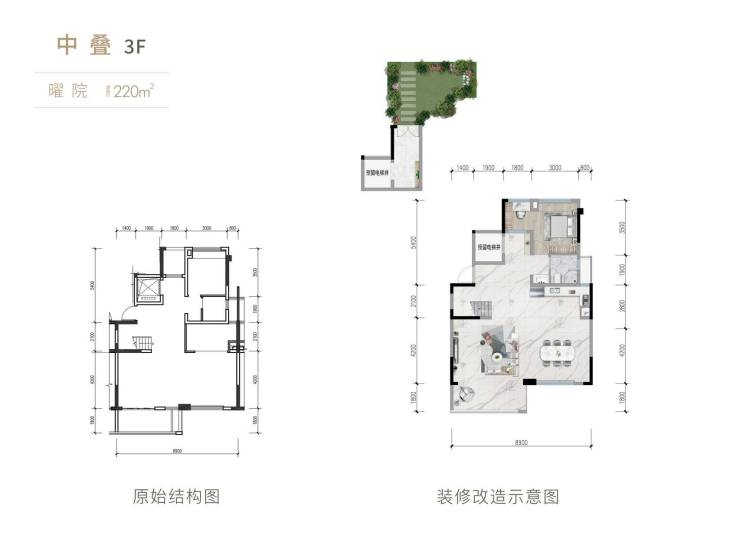 中叠220平 +15-80平花园+13平地下室 总价560-580万