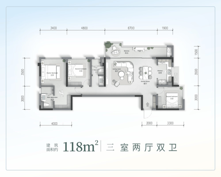 精装高层:118/138㎡,2T3H