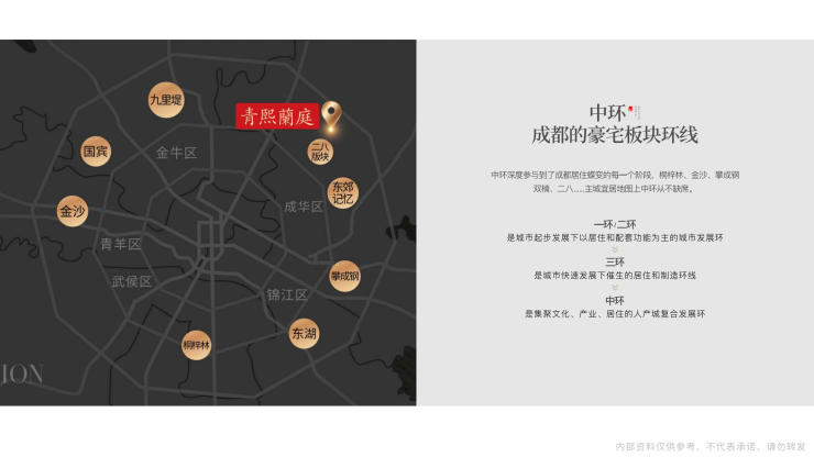 【顶流板块】黄金中环-主城光荣的延续与更新。为响应核心城市发展战略,成都正式提出“5+1“核心区域,被誉为“黄金中”的2.5环串联包含桐梓林、金沙、攀成钢、双楠、二八板块等在内的核心高端居住板块,成为不可复制的城市资源汇聚之处。