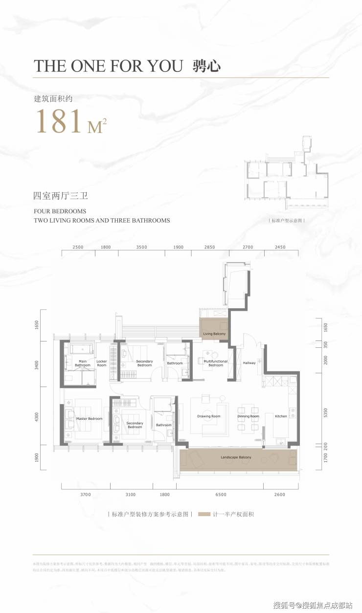 产品定位纯粹:以大平层为主,面积180㎡起步,2T2户的设计,居住舒适度高,圈层相对纯粹。