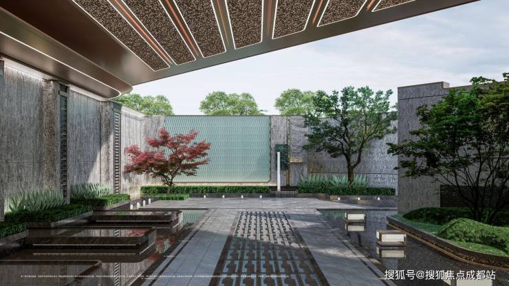以东方精魂、骨料融合西方展演与情景,打造四藏合一之境;景墙拼花更提取蜀锦纹样元素,精炼艺术化表达,以“藏"蕴"锦",奢而不扬。