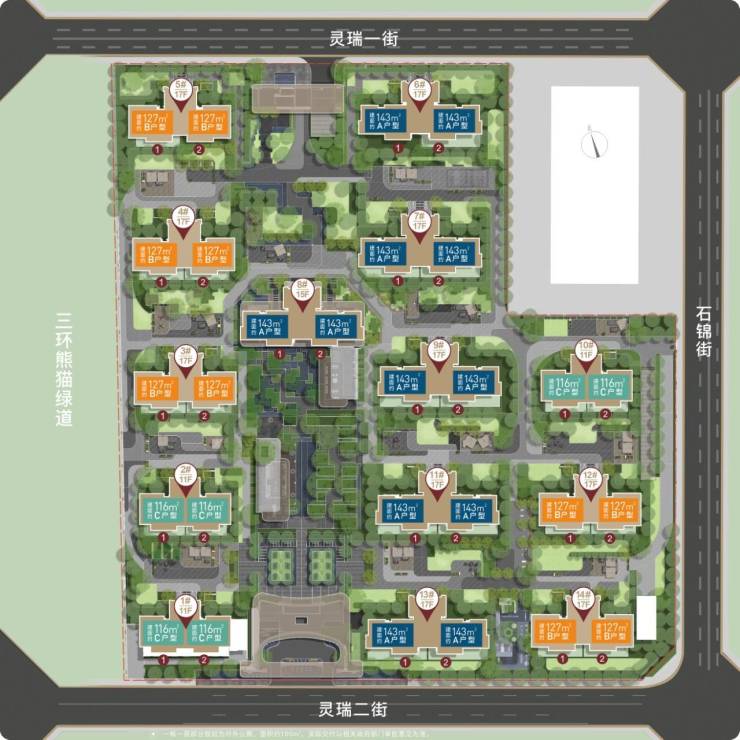 全南北通透板式布局,纯粹低密新品。116-143㎡三大迭新产品。