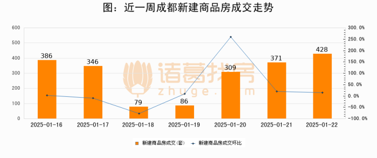【成都成交日报】01月22日新房成交428套、二手房804套;涨价房源5套