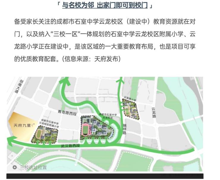 坐享天府新区12大学区中的优质资源,项目周边汇聚石室中学云龙校区及其附属小学、云龙路小学等名校。