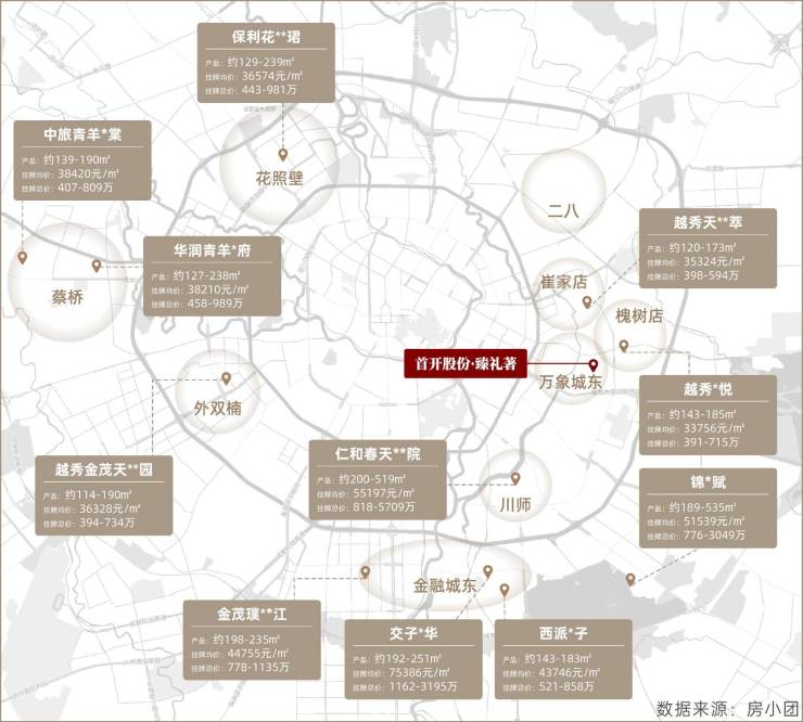 4大主干道:成洛大道/蜀都大道/二环路/中环路;4大地铁线:2号线/4号线/7号线/8号线;3地铁站:槐树店站/迎晖路站/万年场站