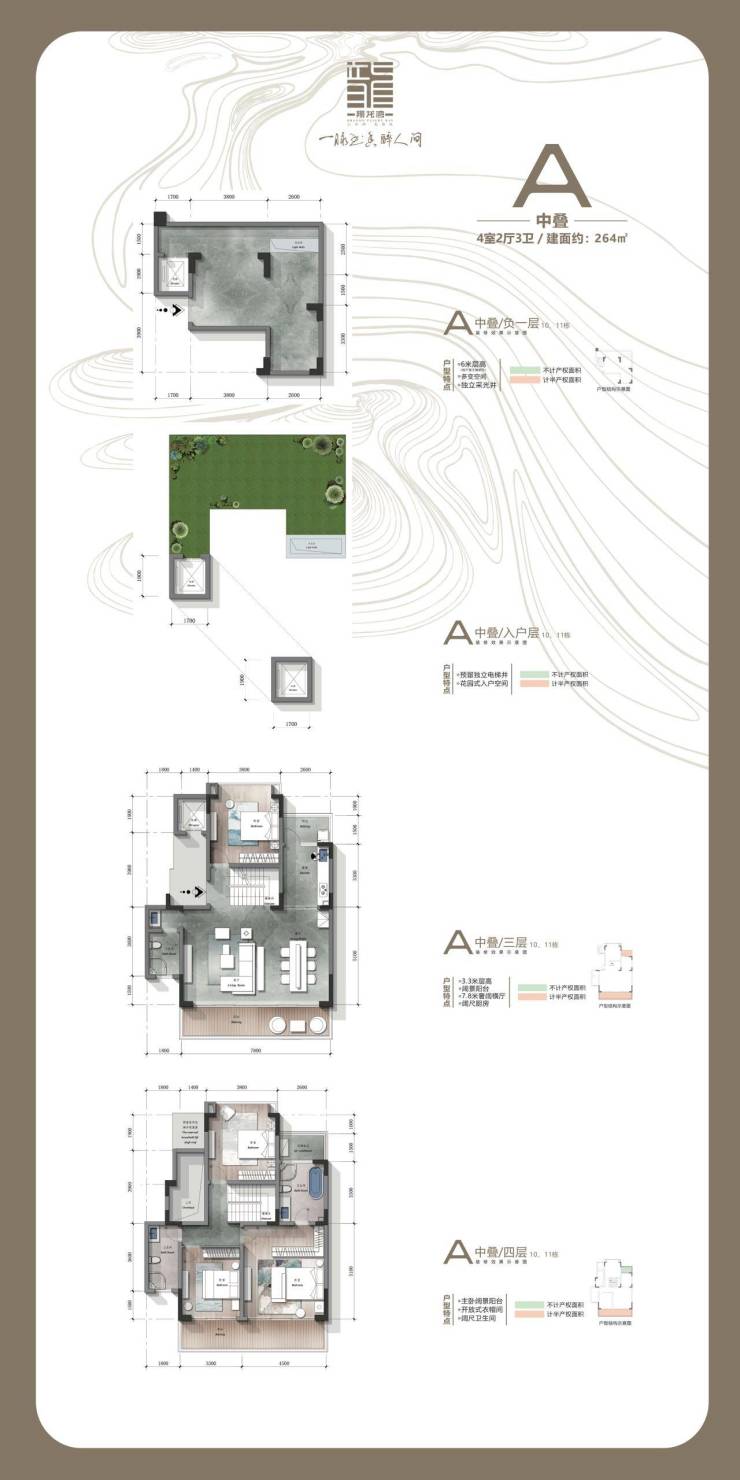 建面约410-472㎡山水双拼 建面约208-327㎡花境叠墅