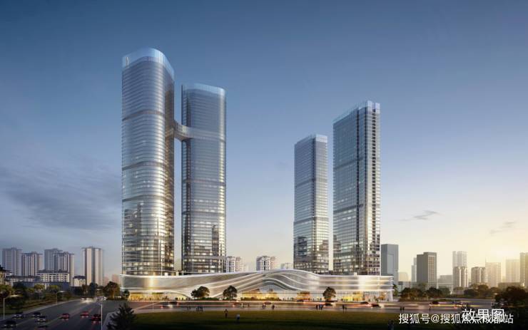 项目总面积约60万方,由两栋243.9m超高层双子塔与两栋199.9m塔楼组成,是集皇冠假日酒店、星际都市乐园、商业mall、企业总部大厦和美学公馆于一体的超级综合体
