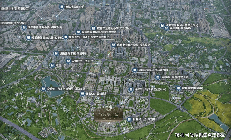 2所七中育才系、2所成师附小系;4所国际学校、7所幼儿园等近20所学校;许燎源博物馆、蓝顶、何多苓等艺术IP;群落交织顶级人文品格与底蕴,启迪一座城市的未来。