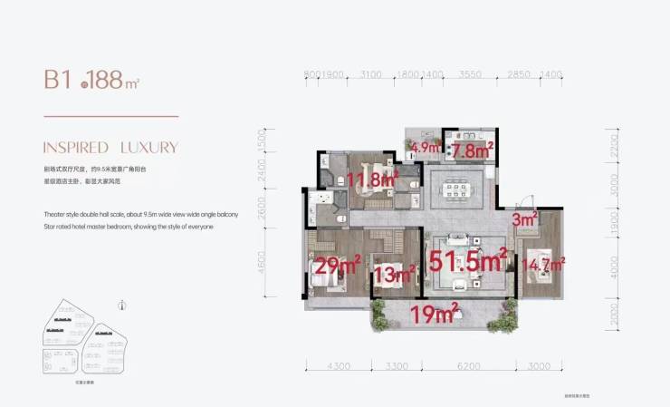B1户型 约188㎡ 四室两厅四卫 云端墅境